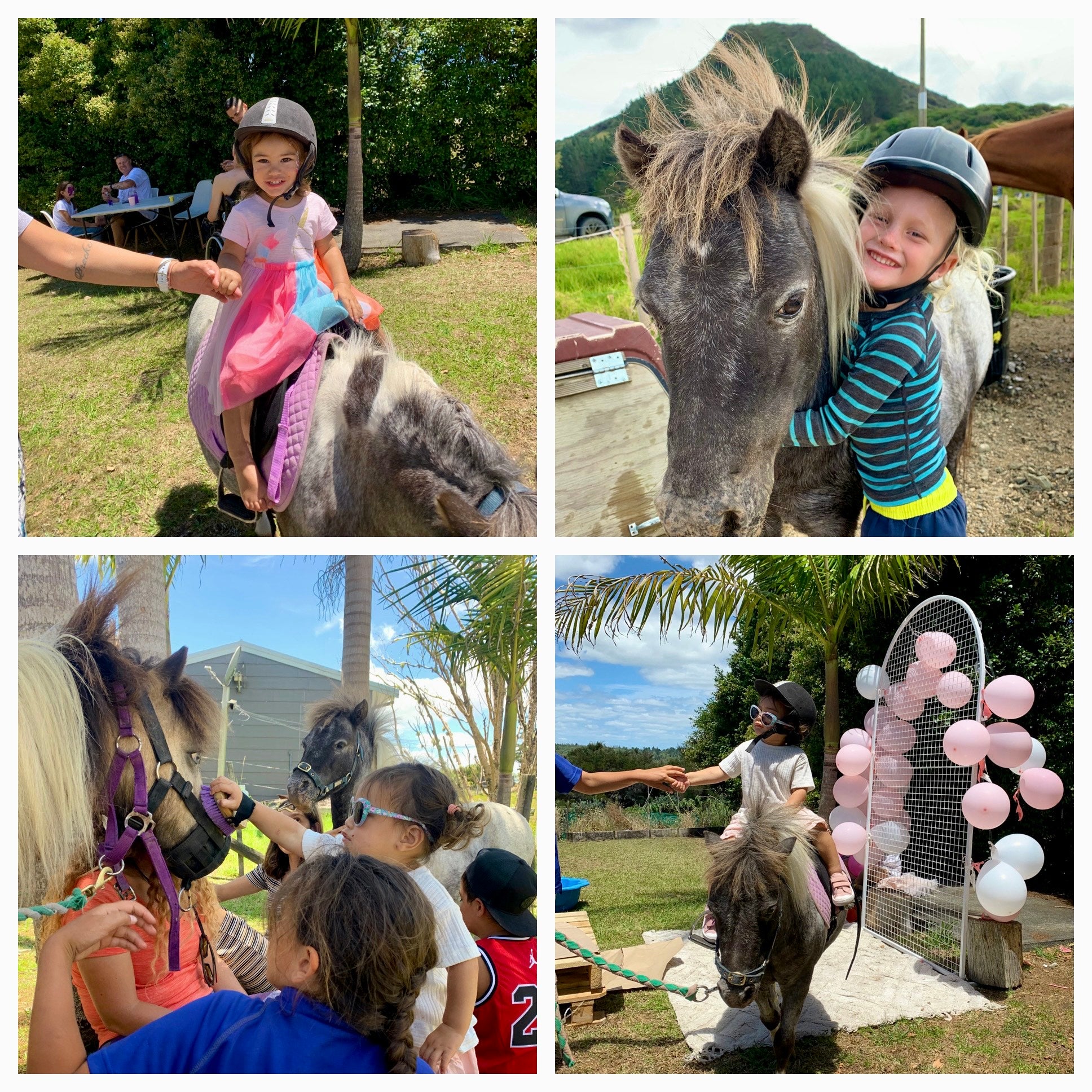Bring the kids for a fun time with the Ponies - and often featuring our mini horses Peter Paint and Benji Button!